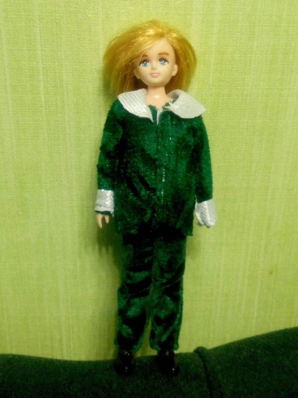 Разговаривали недавно с Ноно про разных кукол, и, короче, я пожалела о том, что нет полных кукол. Не просто типа "пышных" Барби, а именно полных. И вот смотрю я на свою полку, и поняла, что на самом деле я давно хочу сделать Страшилу в человеческом облике. На эту роль у меня давно уже был Такаровский мальчик. Мы с Наташей его даже перепрошили под тот цвет волос, который по моему мнению должен быть у Страшилы-человека. И вот, наконец я решила его доделать до конца. Сшили ему "комбинезон", набитый синтепоном, типа "тело", перекрасили глаза из зеленых в голубые. И теперь он такой)))