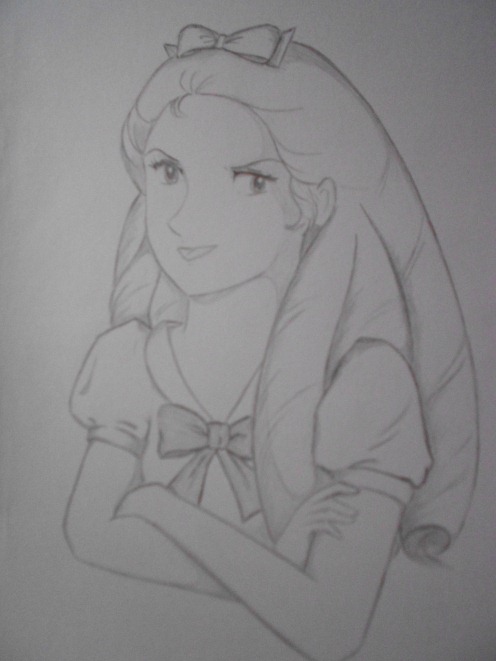 Afina, мне нравится, как ты рисуешь складки и объем ткани, тень на лице. Волосы удачно получились у всех. Пальчики у Элизы мне понравились. А вот глаза немного шалят: у Элизы и Кенди.
