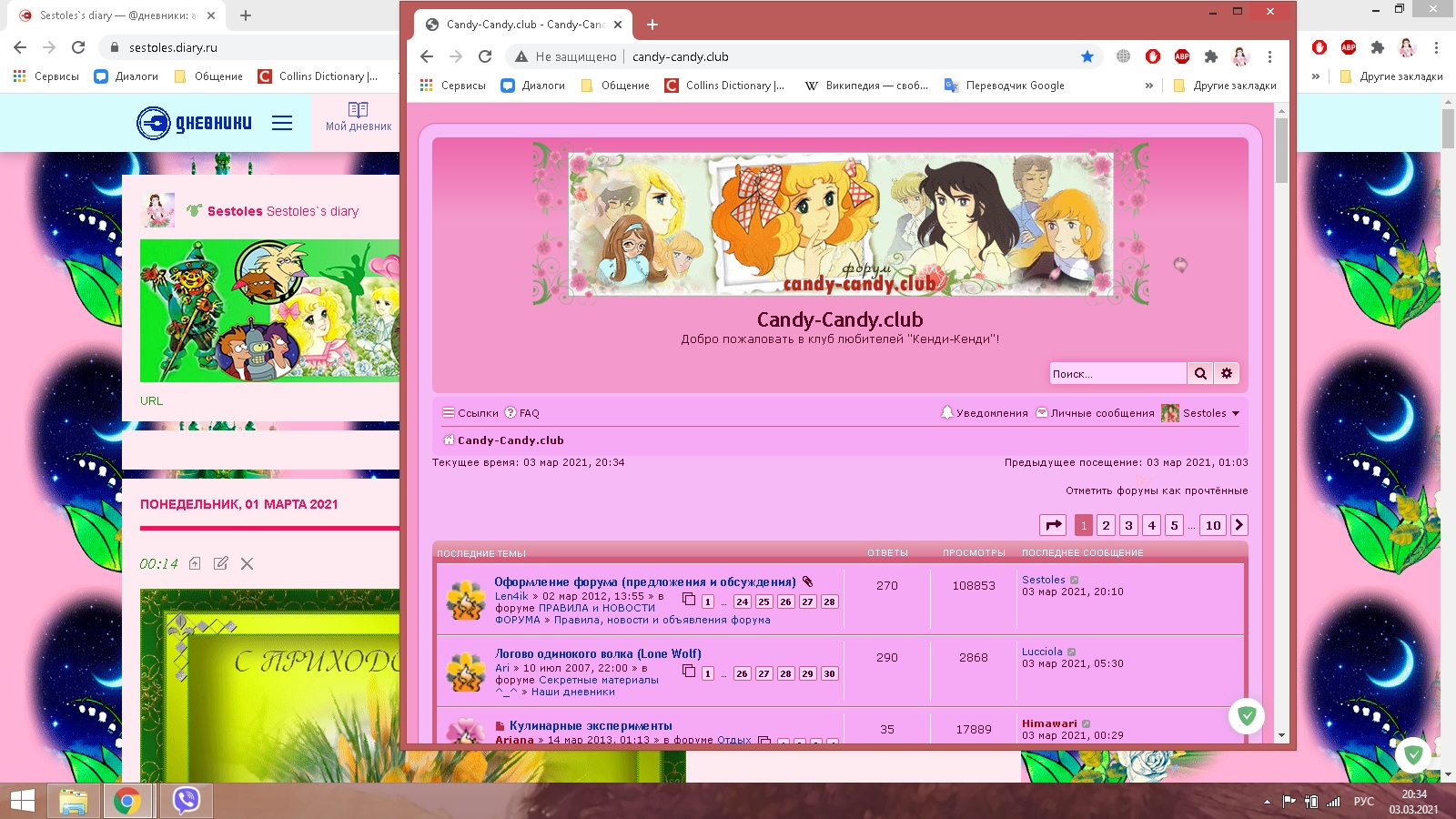 Просто для интереса сравнила дизайны форума и моего дневника на Дайри. У меня там тоже довольно яркий розовый цвет на основном фоне, но он нейтрализуется более бледным розовым на фоне самих записей. А тут получается ярко-розовый на фоне+ярко-сиреневый на фоне текста...)))