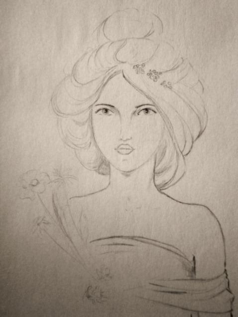 Когда то давно, попыталась повторить то что стоит у меня сейчас на аватарке. Рисунок я не закончила, но набросок остался.