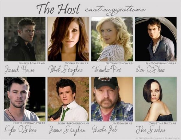 "Я думаю, что в Носителе мы могли бы задействовать действительно известных актёров. Это было бы здорово. Я прямо вижу Роберта Редфорда с бородой в роли Джеба, ему пойдёт? Мет Деймон многими качествами похож на Джареда? а еще, я бы хотела видеть Кэйси Эффлека в роли Йена, и Бена Афлека Кайлом. Только представьте их вместе! "