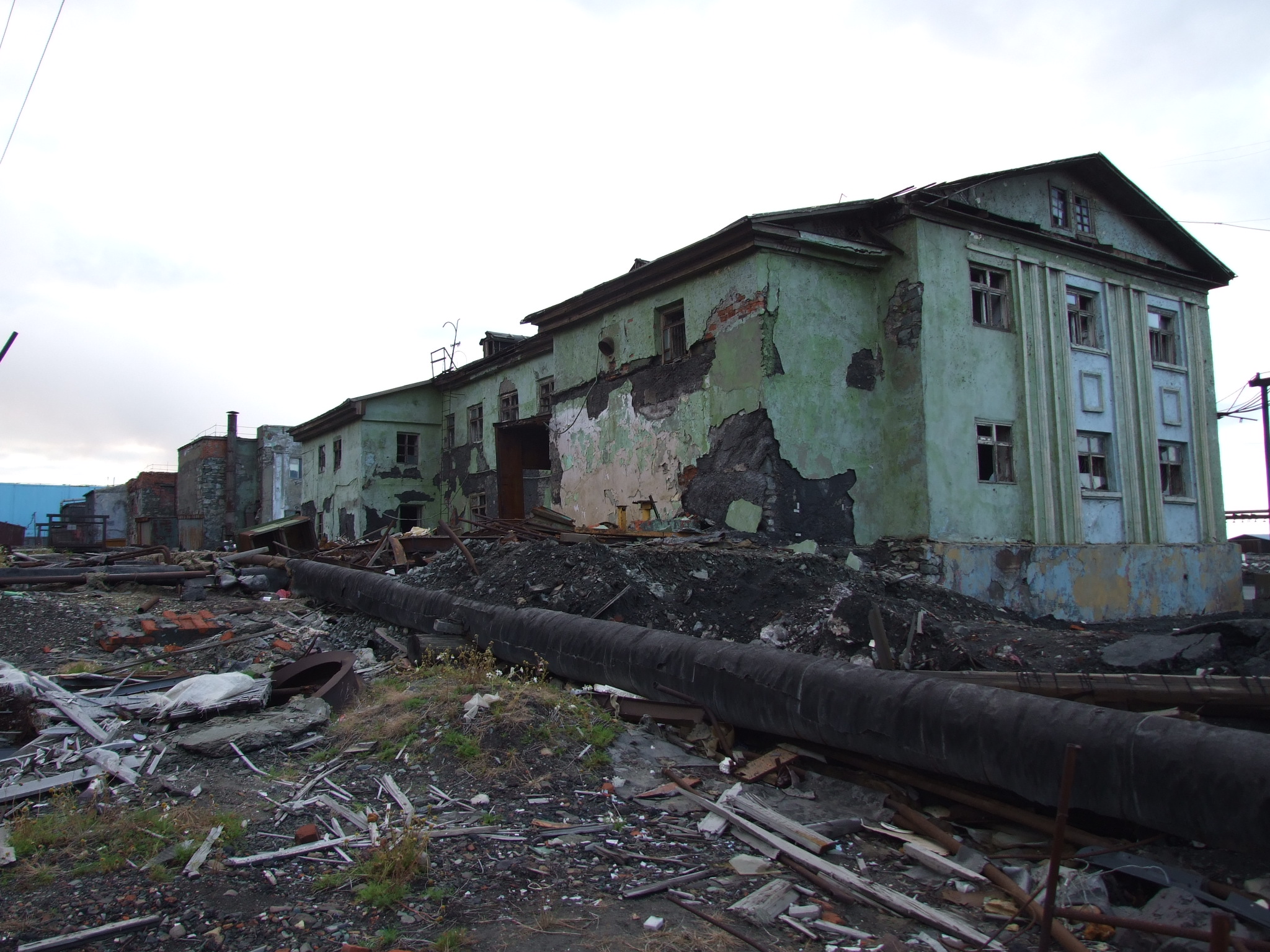 Про Норильск, я кажется, где-то тут уже писала. Там было реально страшно. Целые заброшеные микрорайоны, с многоэтажками, школами, детсадами. Но видели мы это все проездом, из окон машины, в основном. Только один раз удалось подойти поближе. И то, торопили и не дали как следует полазить :(