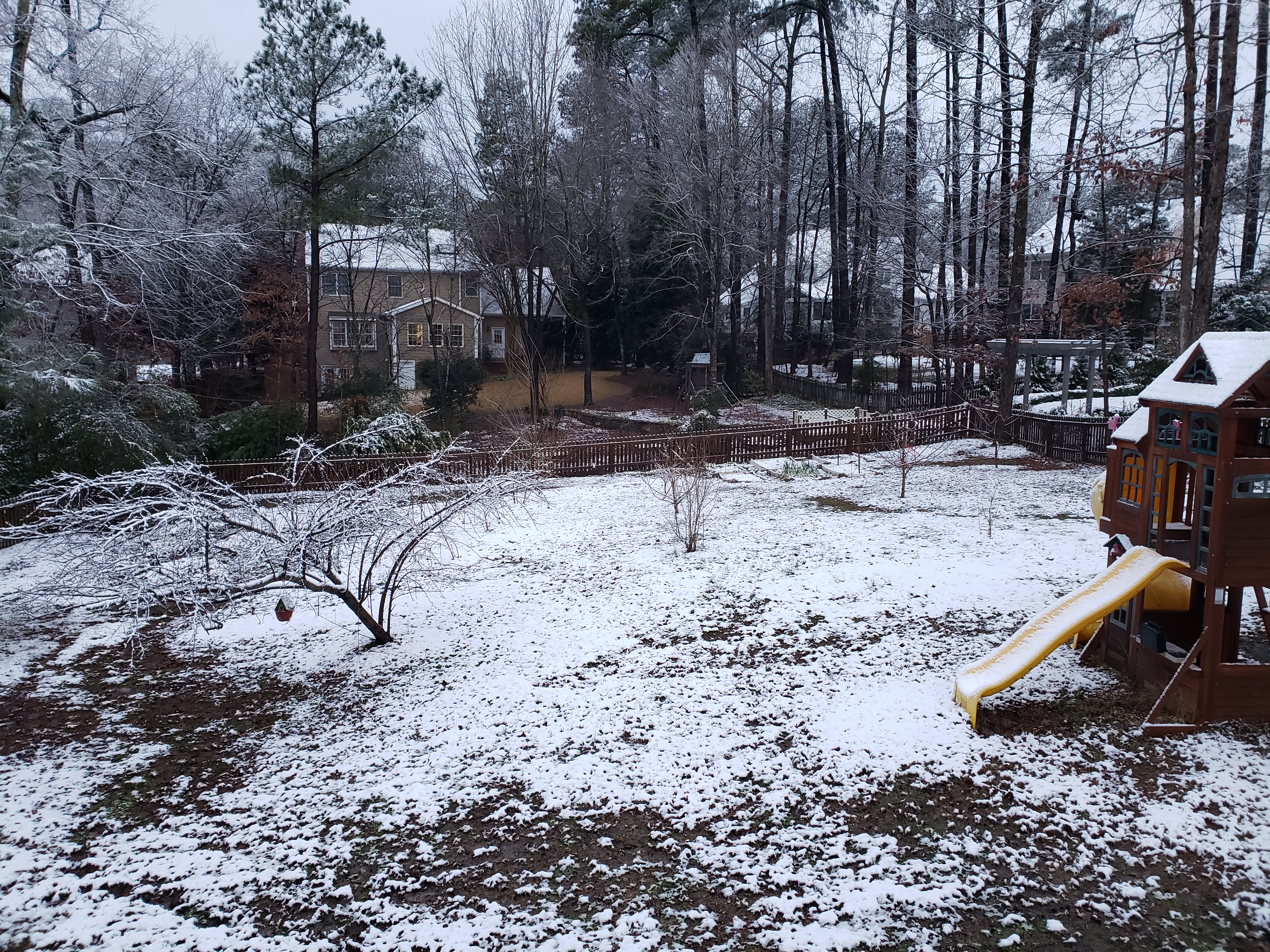 А у нас тоже еще немного досыпало снега, так что можно уже кататься на горке.