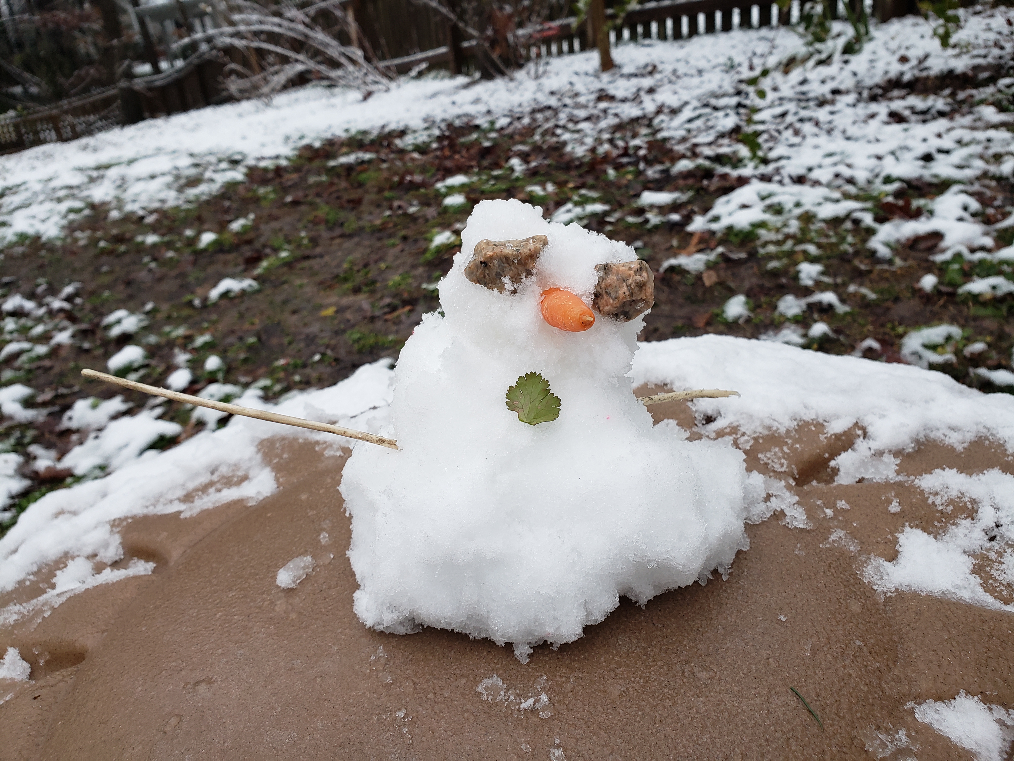 А у нас тоже еще немного досыпало снега, так что можно уже кататься на горке.