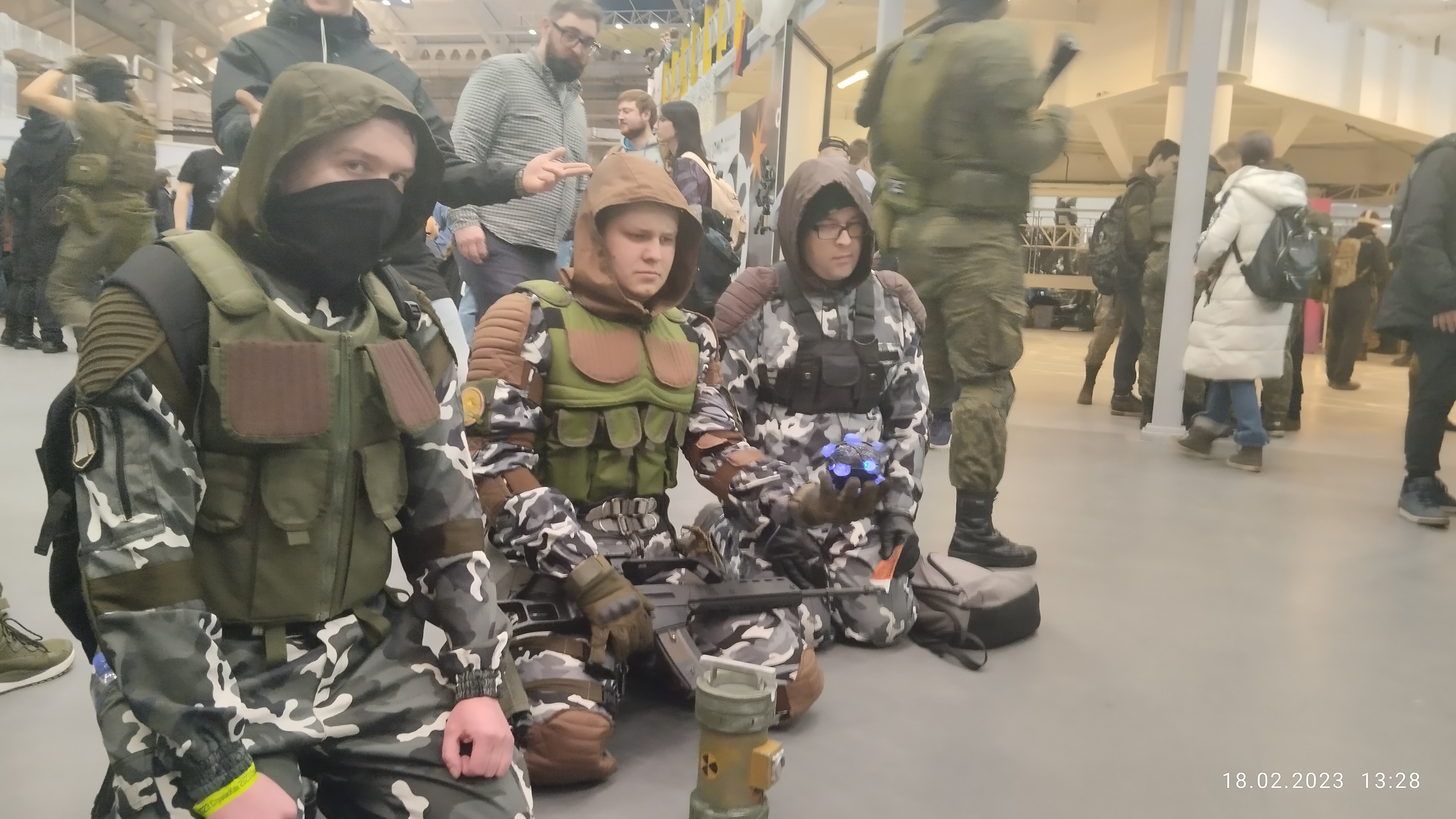 Девушки - не знаю, а мой костюм - группировка "Монолит" из игры S.T.A.L.K.E.R. . Это товарищ всё придумывал и заказывал. Костюм ещё в процессе, мне сейчас новый бронежилет шьют, покупаем ещё перчатки без пальцев, монолитовские шевроны, много чего. Оружие ещё надо.