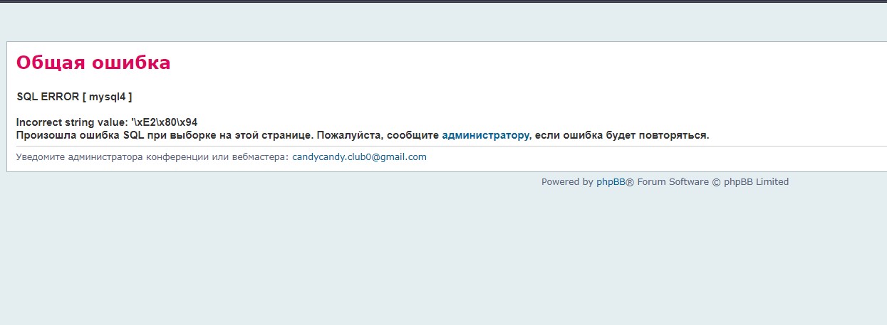 По виду ошибки, я не могу сказать, в чем проблема, это какая-то общая формулировка. Наверное надо обновить phpBB, но это довольно глобально, потому что давно ничего не обновляли и я боюсь, что все сломается 009*