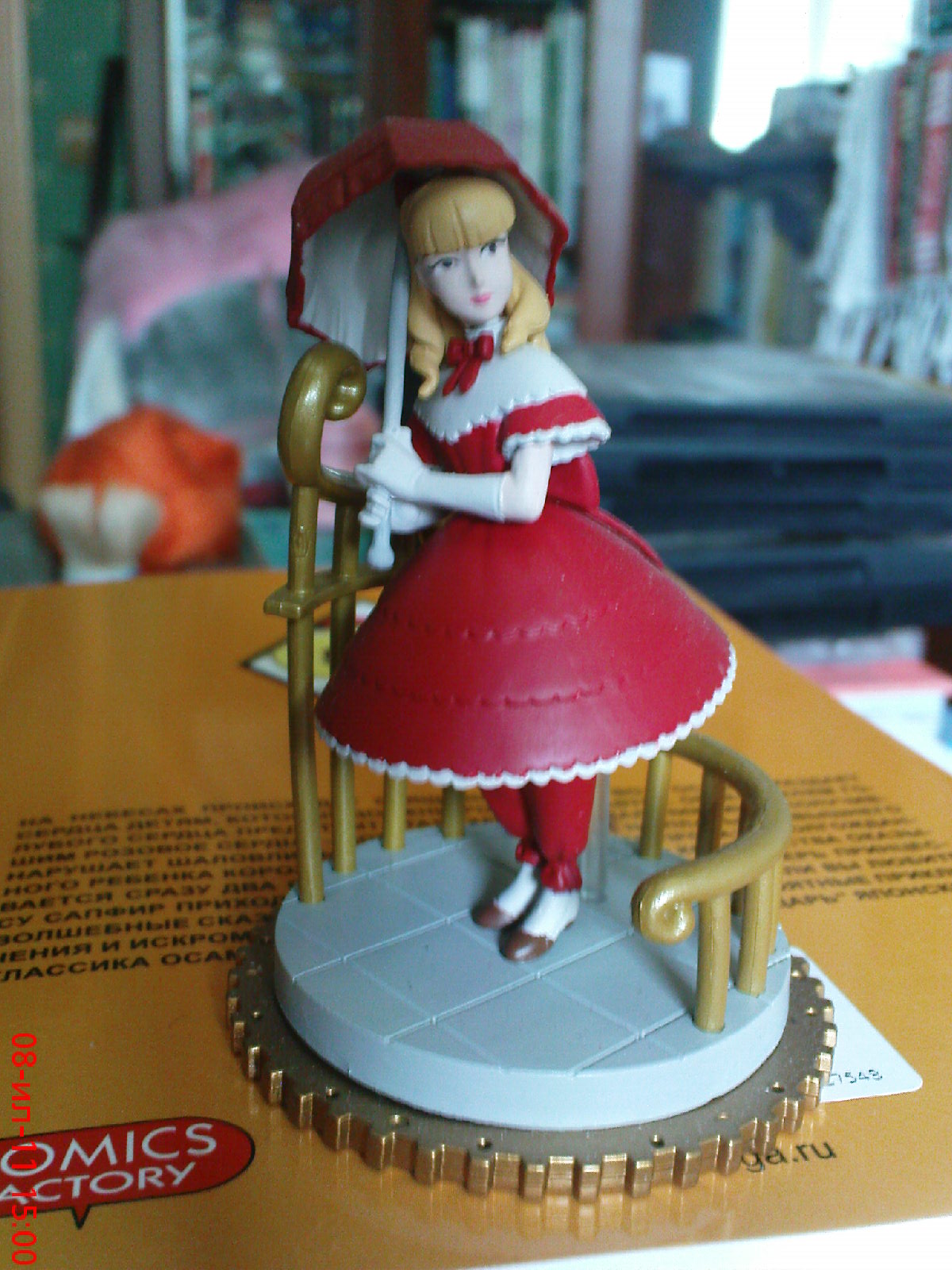 Последняя фигурка осталась. Лорд Десслер из первого в моей жизни аниме - Space Battleship Yamato. Причём несколько раз порывался его продать. Когда-то давно, больше 10 лет назад, мне прислал один японец всего за 1000 рублей, считая доставку, много фигурок одним лотом - все по работам Мацумото, но по "Ямато" была только одна. Это была моя первая самостоятельная покупка на eBay. Лорд Десслер пришёл без руки, тот товарищ из Японии долго извинялся и прислал мне потом руку, которую удалось найти, отдельным письмом без доплаты, а ещё положил в пакет японских карамелек и написал поздравление с Новым годом по-русски. Очень приятный человек. Письмо, кстати, пришло аккурат 31 декабря. Фигурка совсем маленькая, 5 см с троном.