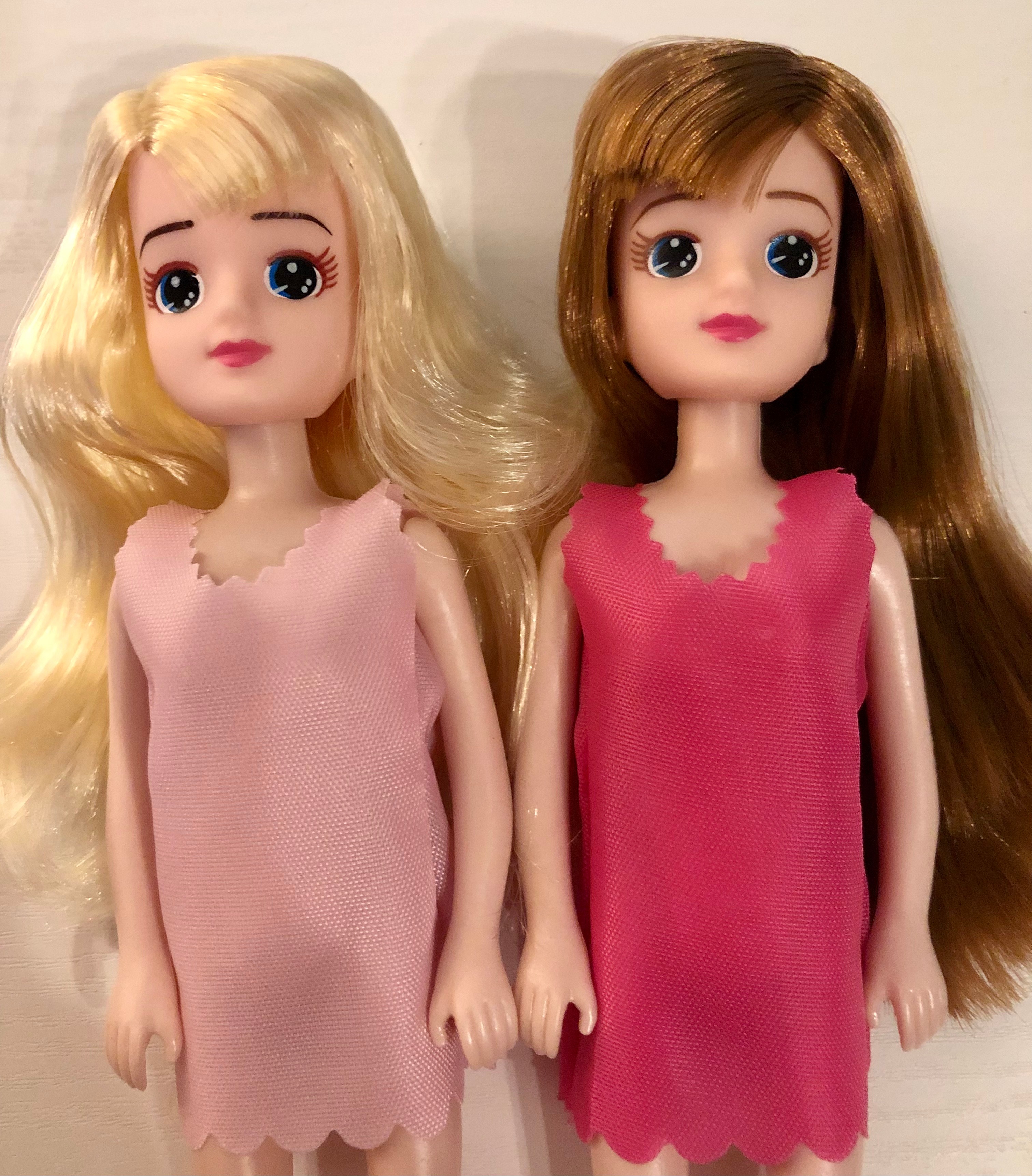 У куколок кавайные лица и тело из твердой пластмассы.