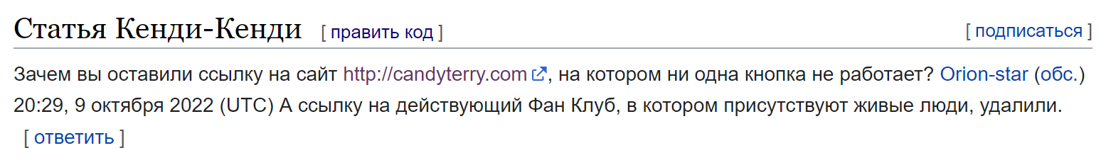 На страницу https://ru.wikipedia.org/wiki/Кэнди-Кэнди