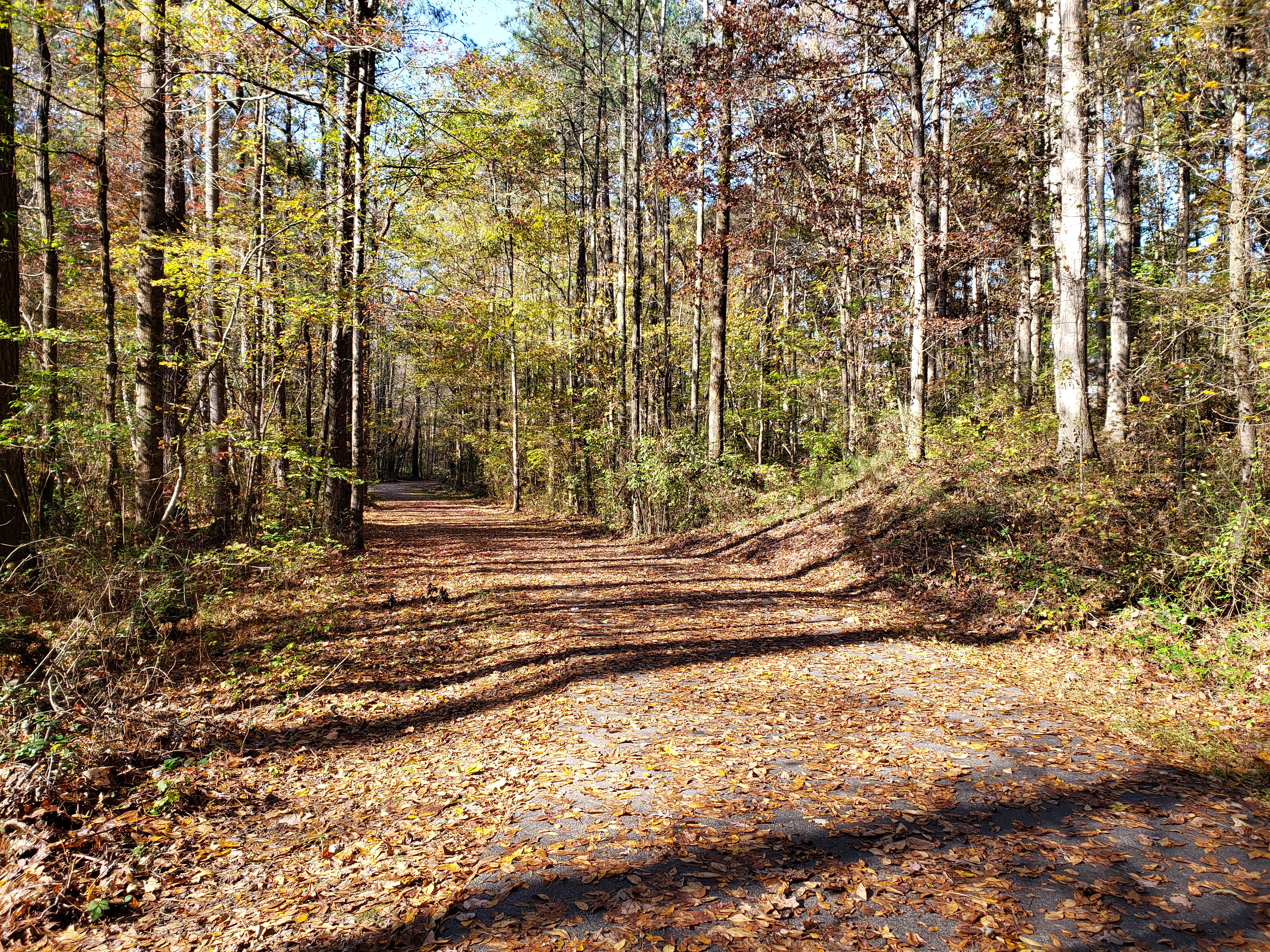 Да, у нас дорожка беговая не далеко от дома начинается, без машин, до парка идет, 2,5 км в одну сторону. Немного только по тратуарам, вдоль домов получается. Выглядит вот так это. Осенью фотала. Кажется, что в лесу, но на самом деле там совсем немного деревьев и задние дворы домов.