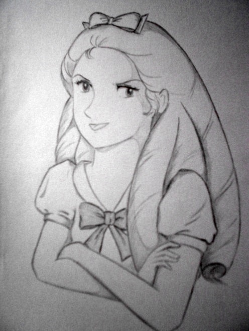 Afina, мне нравится, как ты рисуешь складки и объем ткани, тень на лице. Волосы удачно получились у всех. Пальчики у Элизы мне понравились. А вот глаза немного шалят: у Элизы и Кенди.