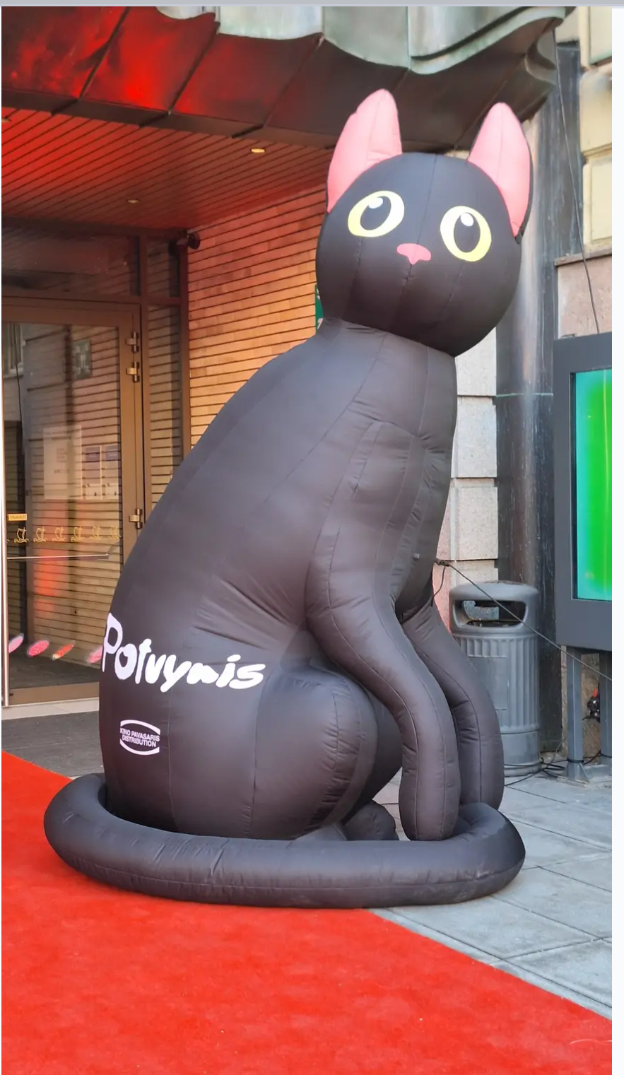 Кот шагает по планете! Дошел и до нас. Стоит на красном ковре у театра, где сегодня открылся местный кинофестиваль. Метра три высотой. Вот я прямо рада что его увидела!